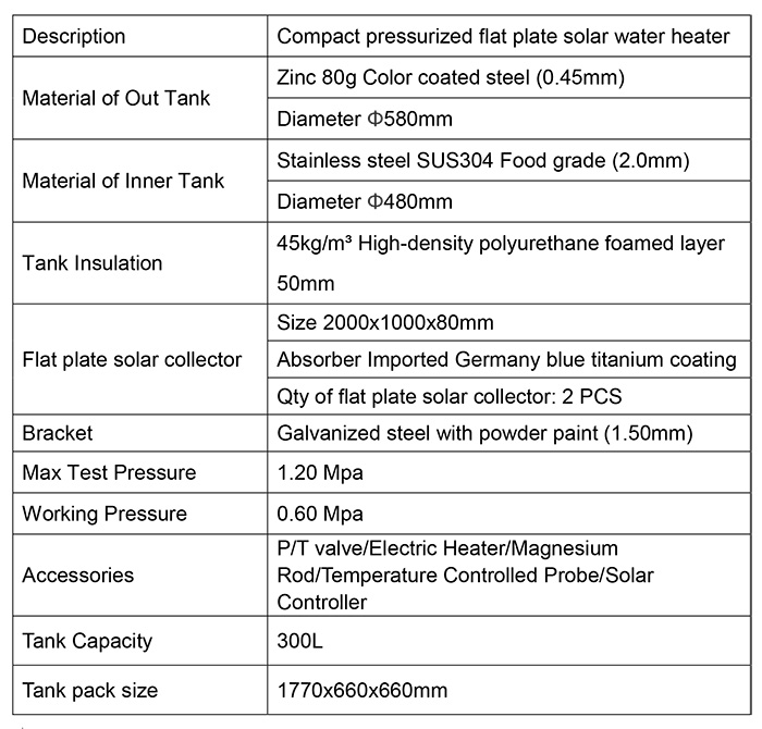 ● Compact pressurized flat plate solar water heater is composed of flat plate solar collector,
