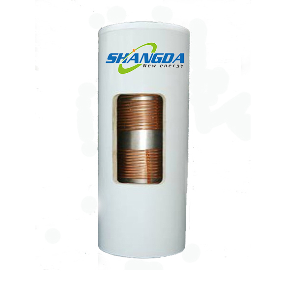 pressurized water tank through circulation between flat plate solar collector and coiler heat exchanger