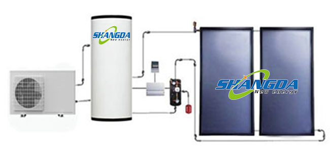 Split pressurized flat plate solar water heater is an active system, can combine with heat pump,